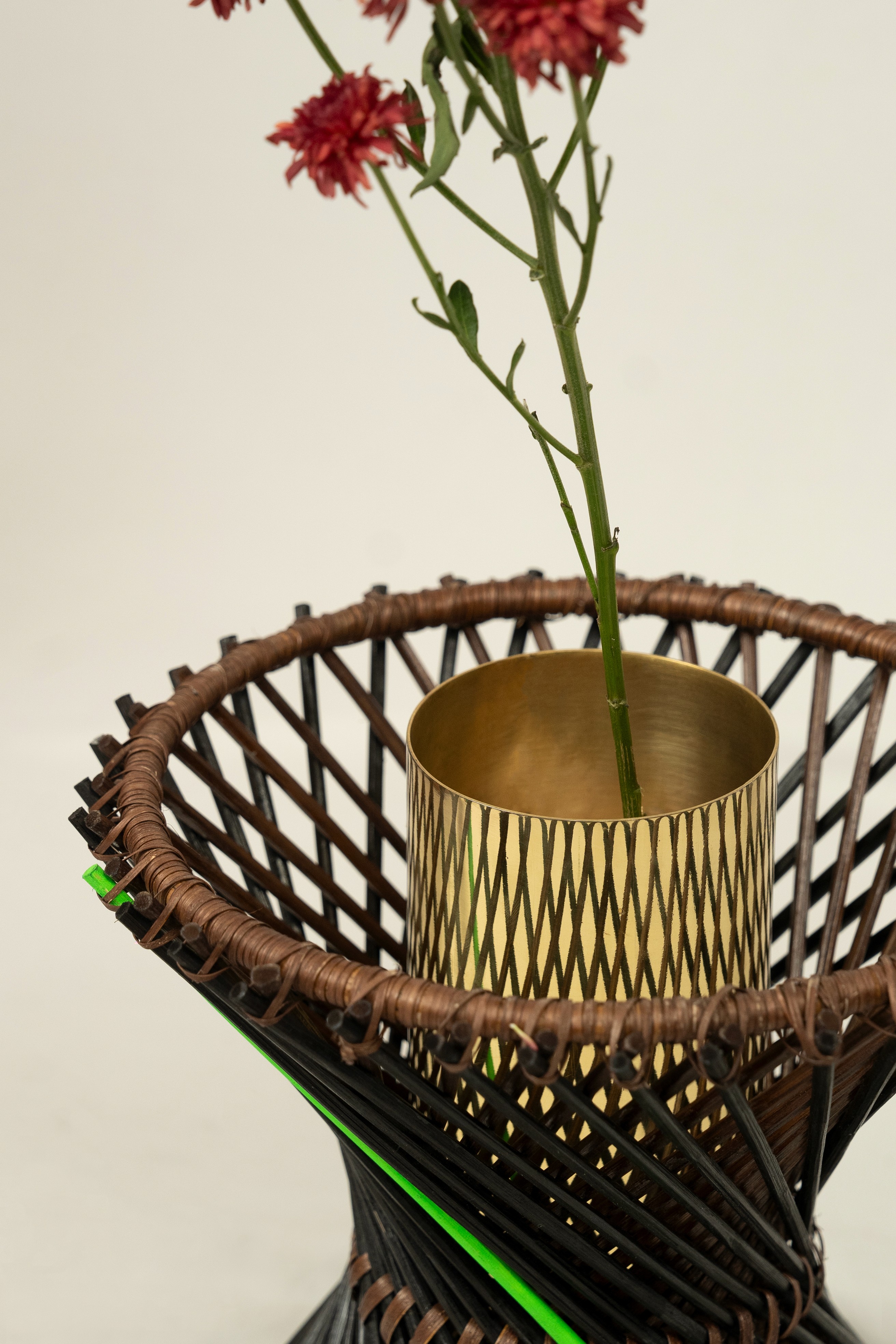Stainless Steel / Brass Coating / Natural Cane & Bamboo (with Clear Matt Lacquer)